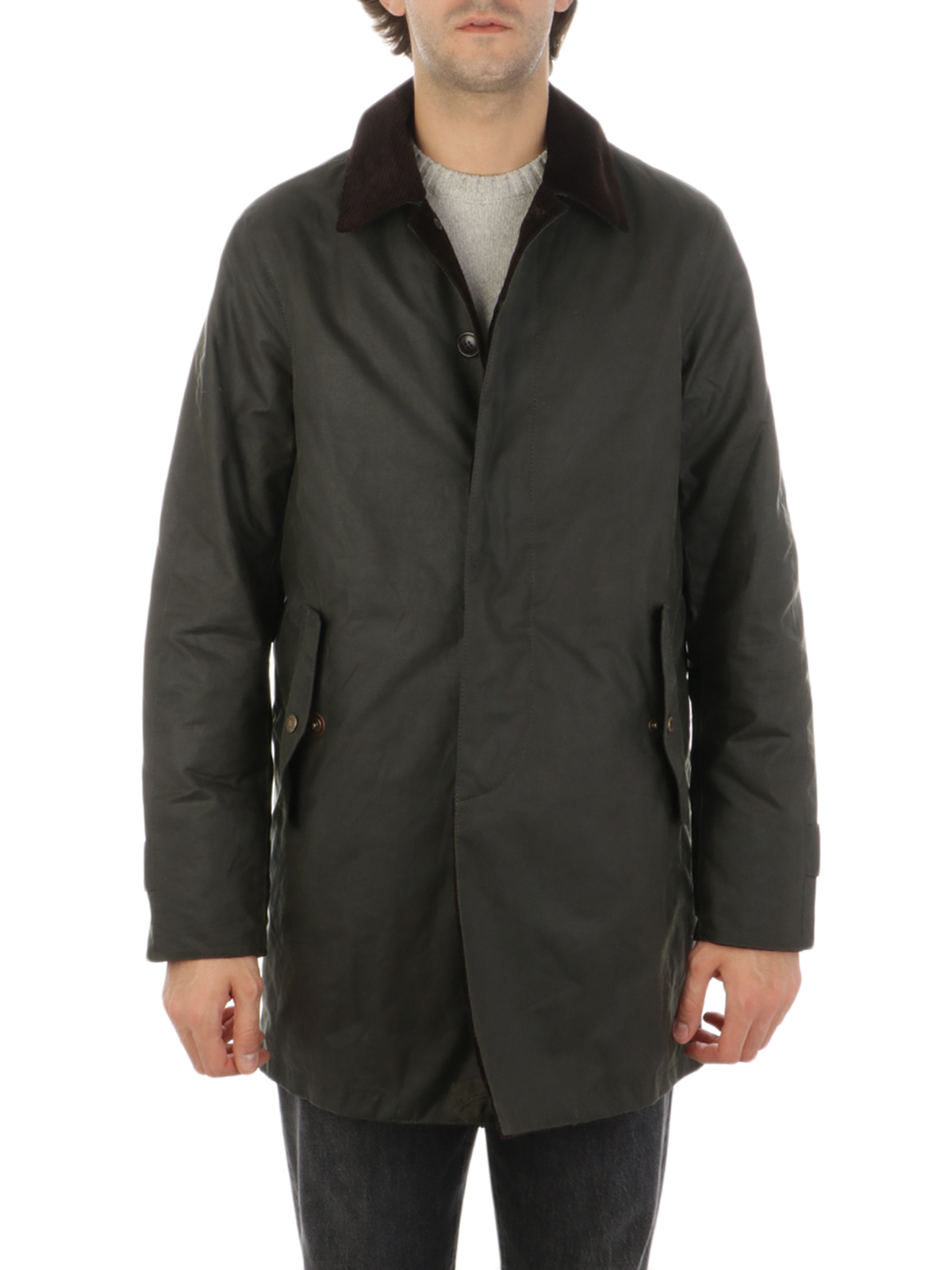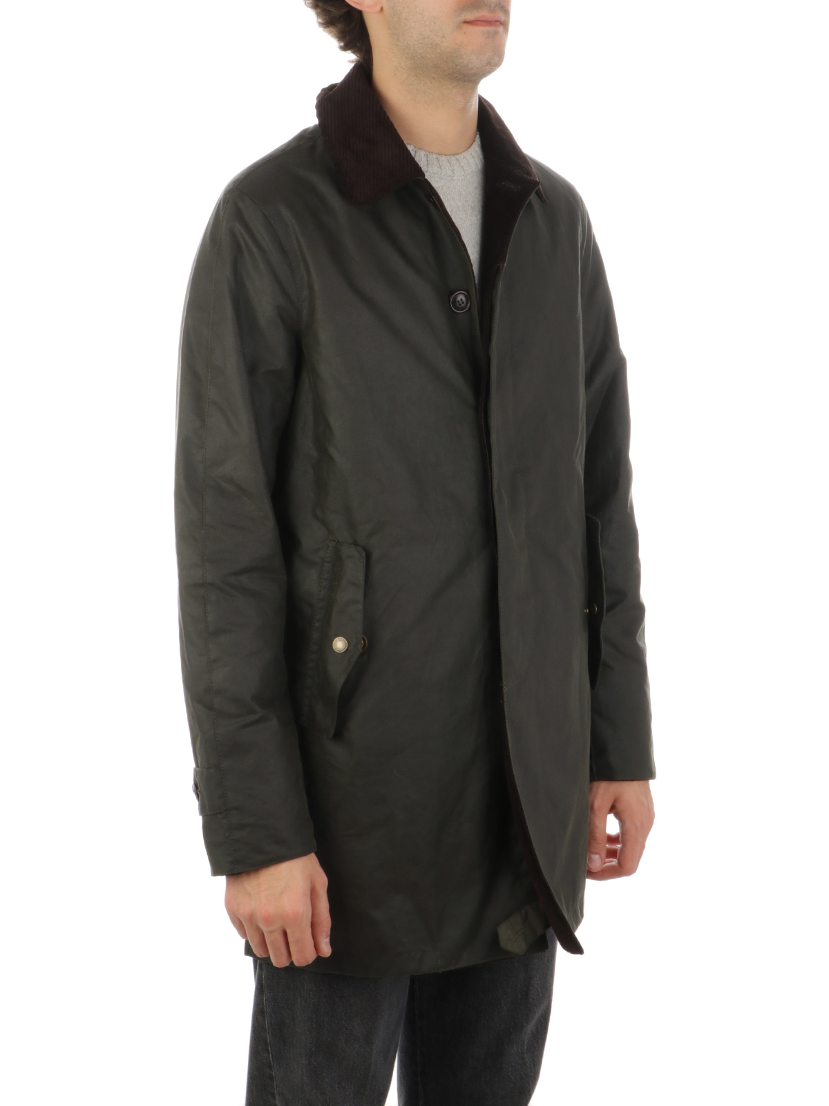• Stand-up collar with buttons