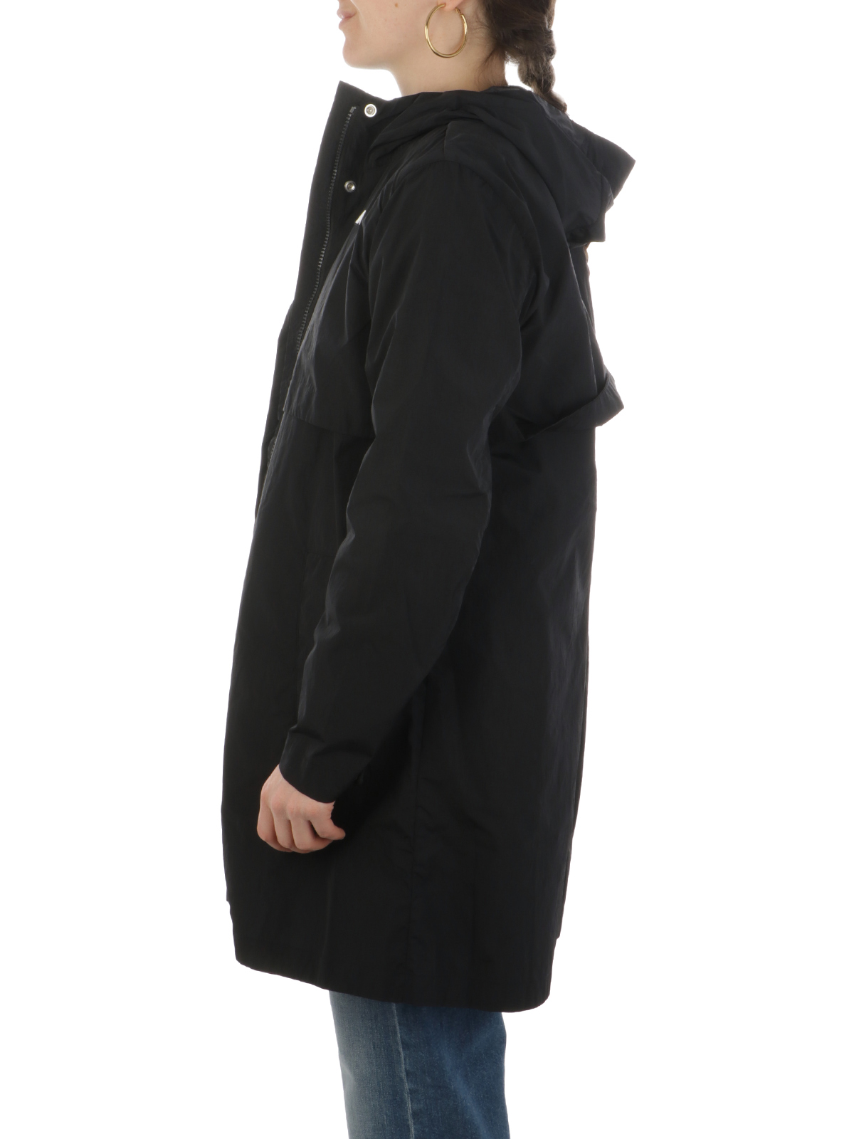 • Stand-up collar with fixed hood