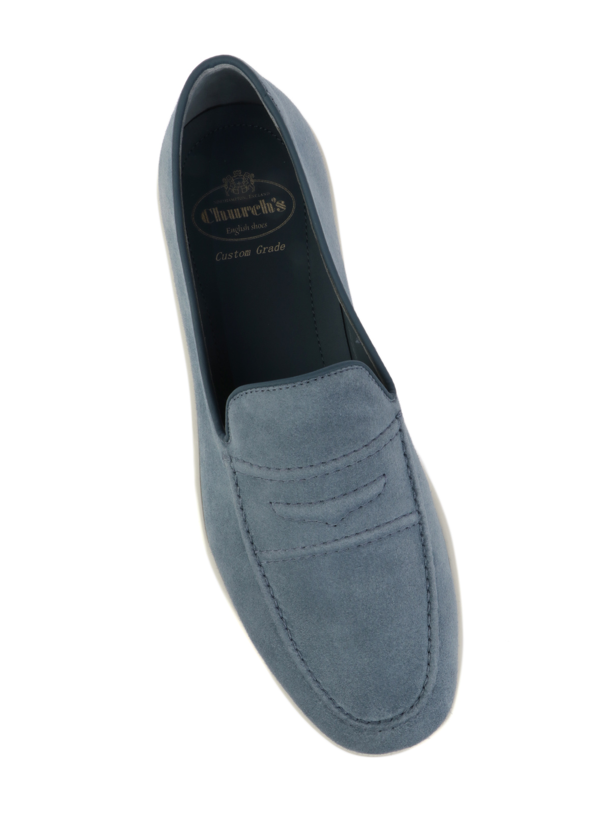 Mocassino Church's da uomo in pelle scamosciata con linguetta seghettata, fascetta in pelle, cuciture a vista, suola in cuoio. Made in UK